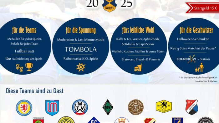Unsere F3-Jugend lädt an Halloween zu einem namhaft besetzten Jugendturnier für den Jahrgang 2018 auf der Lammer Sportanlage ein. Neben spannendem Fußball erwartet euch ein attraktives Rahmenprogramm, inklusive Tombola und … Halloween-Cup 2025 weiterlesen